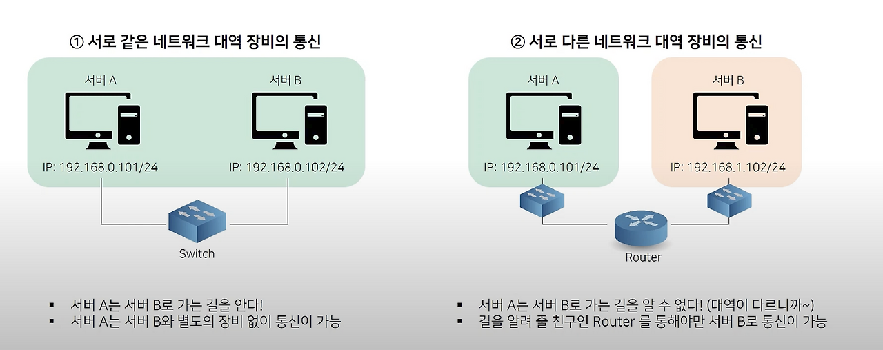 다른 네트워크에 속한 컴퓨터와 통신할 때